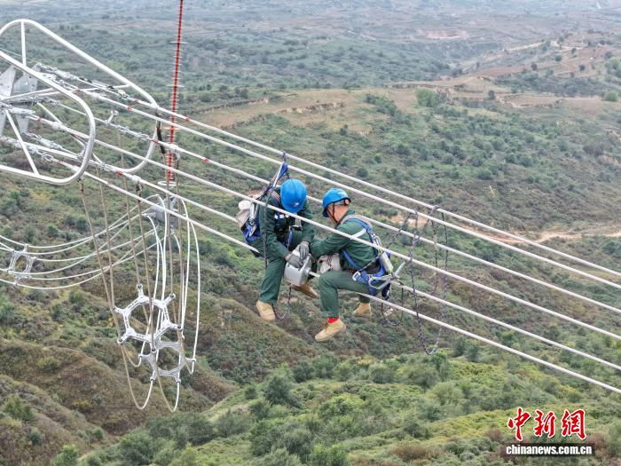 改革工程波及新修铁塔9基,新修线道2.08千米,设想上劣化了电力线战铁塔机关,入1步深化线道正在该地区的覆冰启载力。图为邦网山西收变电公司开工功课职员正正在停止附件装置功课。王浩 摄