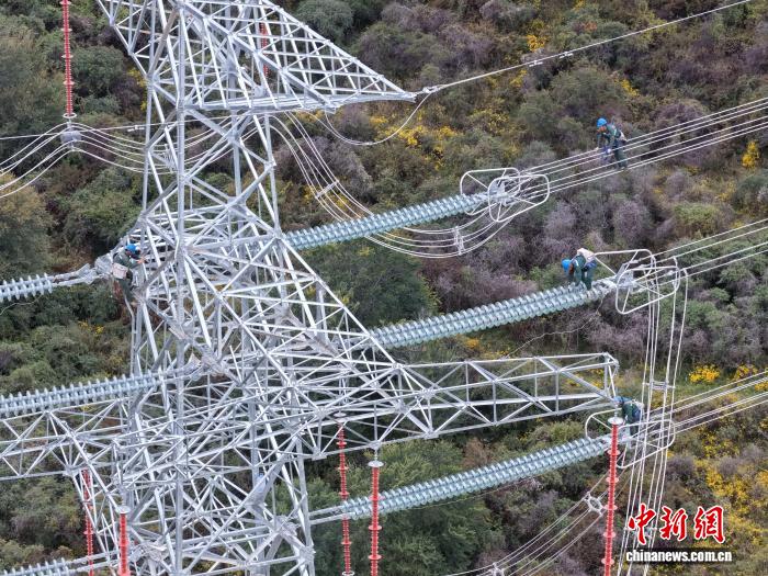 改革工程波及新修铁塔9基,新修线道2.08千米,设想上劣化了电力线战铁塔机关,入1步深化线道正在该地区的覆冰启载力。图为邦网山西收变电公司开工功课职员正正在停止附件装置功课。王浩 摄